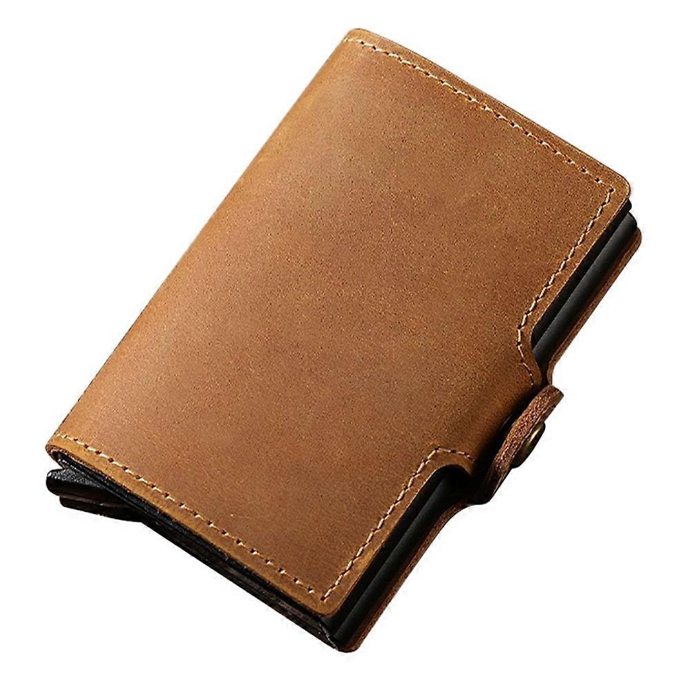 TP-8251 Vintage Crazy Horse Leather Card Holder Double Layer Aluminum Card Case RFID Auto Pop-Up