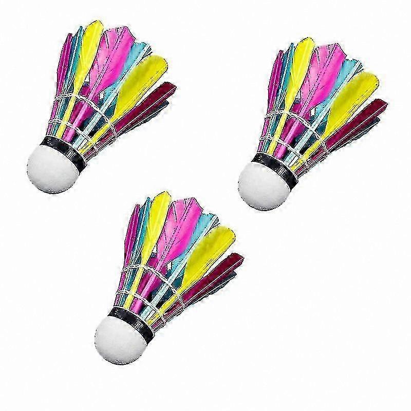 Perfect for outdoor and indoor sports, adds more fun for you and your family. Fast volleys with consistent flight. Color: multicolor. Material: duck feather and foam. Package contents: 3 x Badminton shuttlecocks. The package includes only the items listed; other products are not included. Note: Lighting and display differences may cause slight variations in color between the image and the actual item. Measurement may vary by up to +/- 1-3 cm.