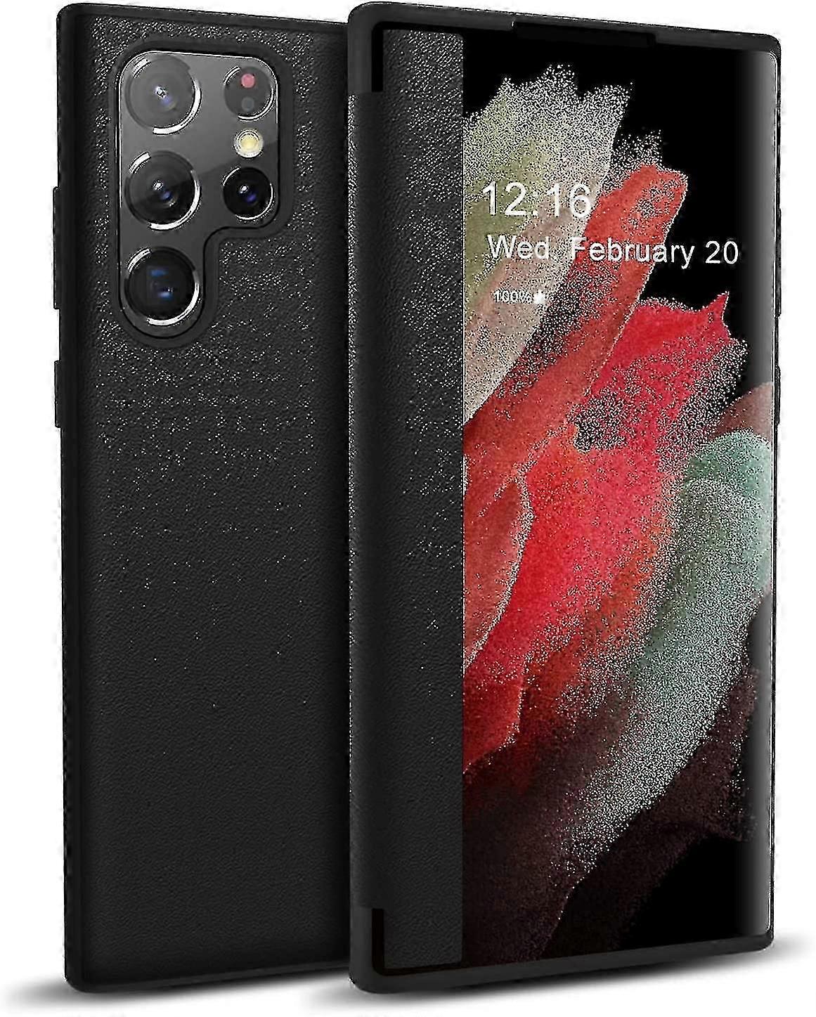 Translucent Matte Leather Folio Flip Case for Galaxy S23 Ultra/S23 Plus/S23 with Window View