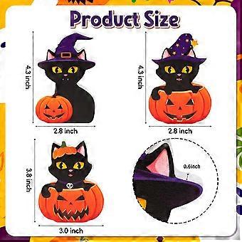 3-piece Halloween wooden table decoration set, witch hat black cat pumpkin tiered tray set table decoration