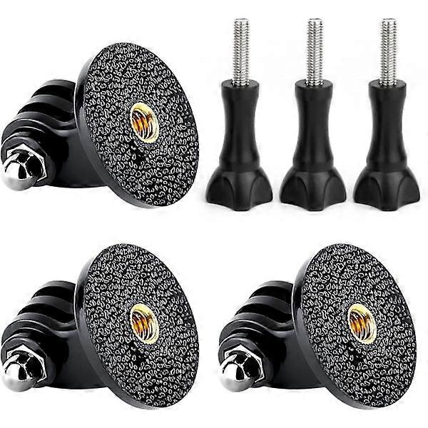 Tripod Mount Adapter with Thumb Screws Compatible with GoPro Hero 12 11 10 9 8 7 6 5 4 3 3+ 2 1 Session Fusion MAX DJI Osmo Action Camera This standard 1/4 inch - 20 threaded tripod adapter mount is an essential accessory for GoPro or other action cameras to use with tripods, monopods, selfie sticks, etc. Features a copper casting screw stud and a fully enclosed base, making it more durable and stable than others, and it will never rust even when used underwater. Primarily used with tripods or monopods. Quality: The adapter is made of quality polymer material, durable enough for use and reduces the weight of your luggage. The anti-slip ridge design on the top prevents your camera from sliding after installation. Compatible with most action cameras such as Go Pro Hero12 11 10 9 8 7 6 5 4 3 3+ 2 1 GoPro HERO2018 Session Fusion, DJI OSMO, SJCAM, AKASO, or others that own a finger mount or a camera with a finger frame mount. Package includes: 3X Tripod Mount Adapters, 3X Thumb Screws. Note: All data is measured manually; please allow 1-3 cm error. Due to differences in light and display, there will be some color difference; the actual item received shall prevail.