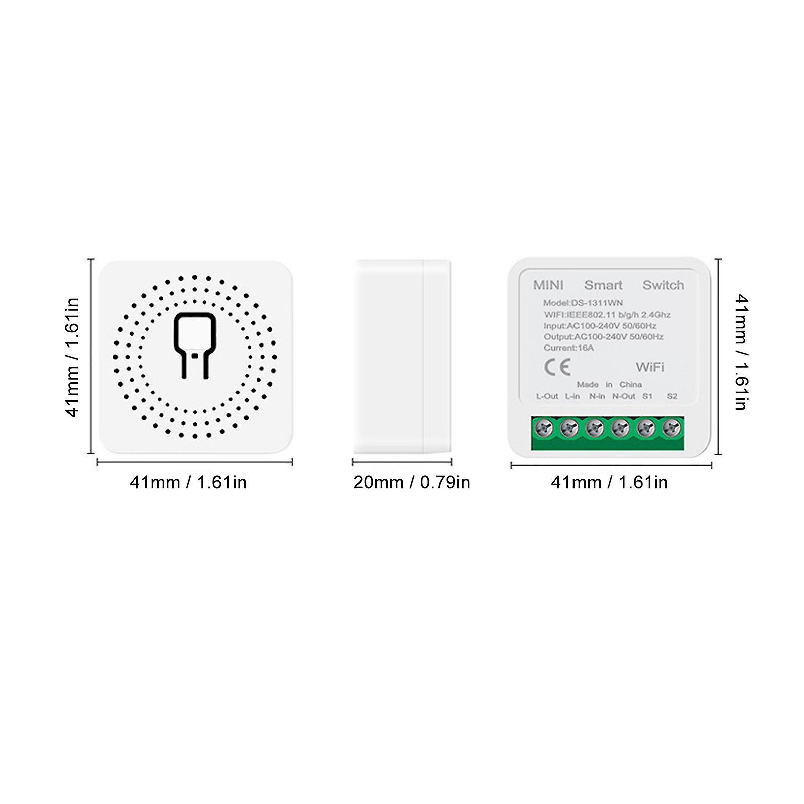 Uadme Mini Smart WiFi Switch,DIY Smart Light Switch Module Home Wall Light Control Module 16A AC100‑240V 50/60HZ