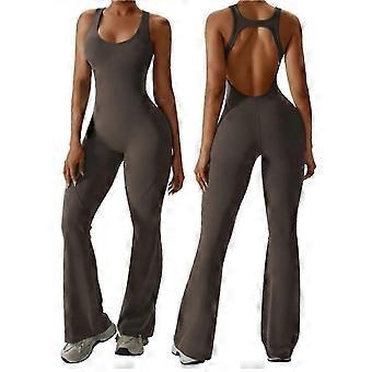 Womens Flare Jumpsuit with Bra Tummy Control Cutout Romper Workout Outfit Sleeveless Unitard One Piece Backless Bodysuit -GS