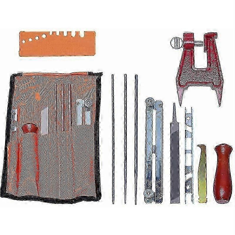 Universal Chainsaw Sharpening Kit, Chainsaw File Set with Files, Wooden Handles, Depth Gauge, Polishing Guide, Tool Bag and Bench Screws