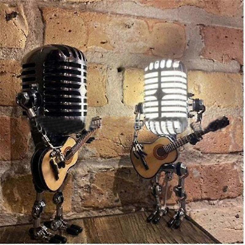 Usb Retro Style Microphone Robot Lamp Holding Guitar With Light Vintage Home Decoration