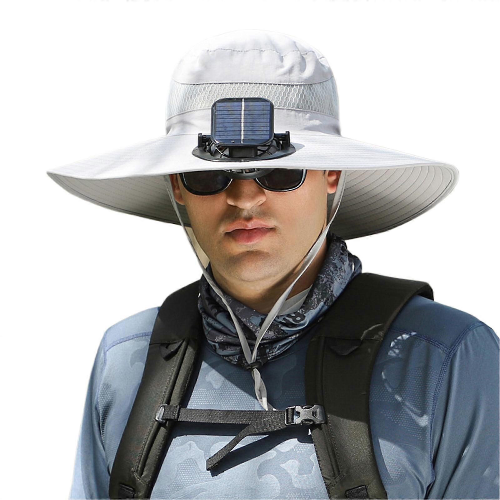 USB Rechargeable Fan Hat for Women Men Breathable Solar Powered Fan Hat Sun Protective Hat Adult Cooling Fan Visor Hat light grey