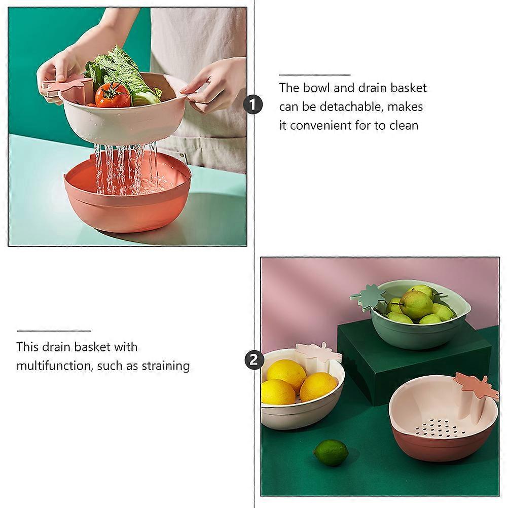 Vegetable Drain Bowl Double Layer Strainer Basket Home Kitchen Use Jujube Red 1Pc