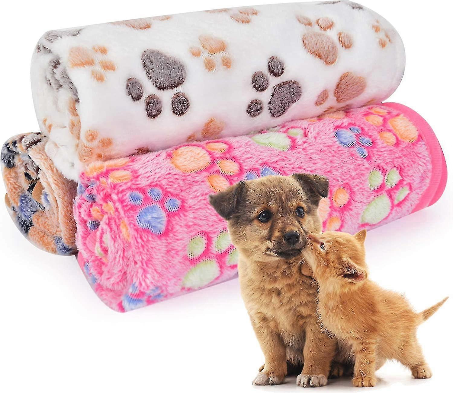 Vejaoo Dog/cat Blanket Machine Washable Dog Cat Mat Large Washable Soft Soft Pet Bed, 3 Units Xz019 (76 * 52, Beige+pink+camel Dog's Paw)