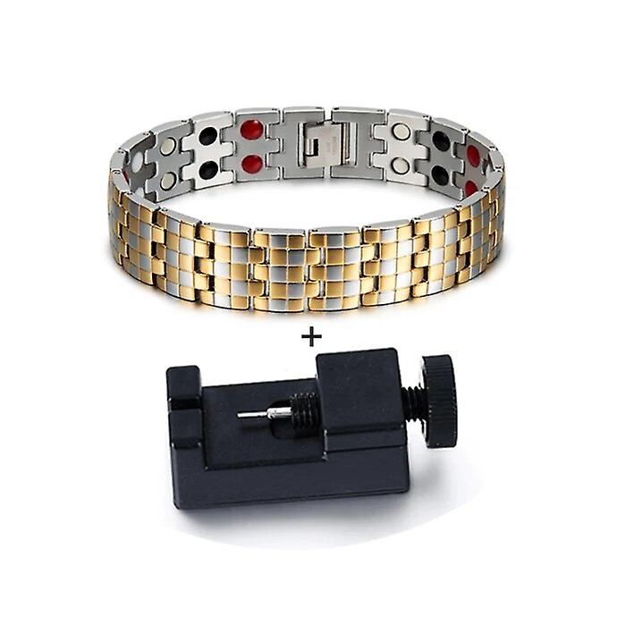 Vinterly Energy Magnetic Bracelets Male 16mm Wristband Gold-color Stainless Steel Men Bracelet Hand Chain Wide Germanium Jewelry