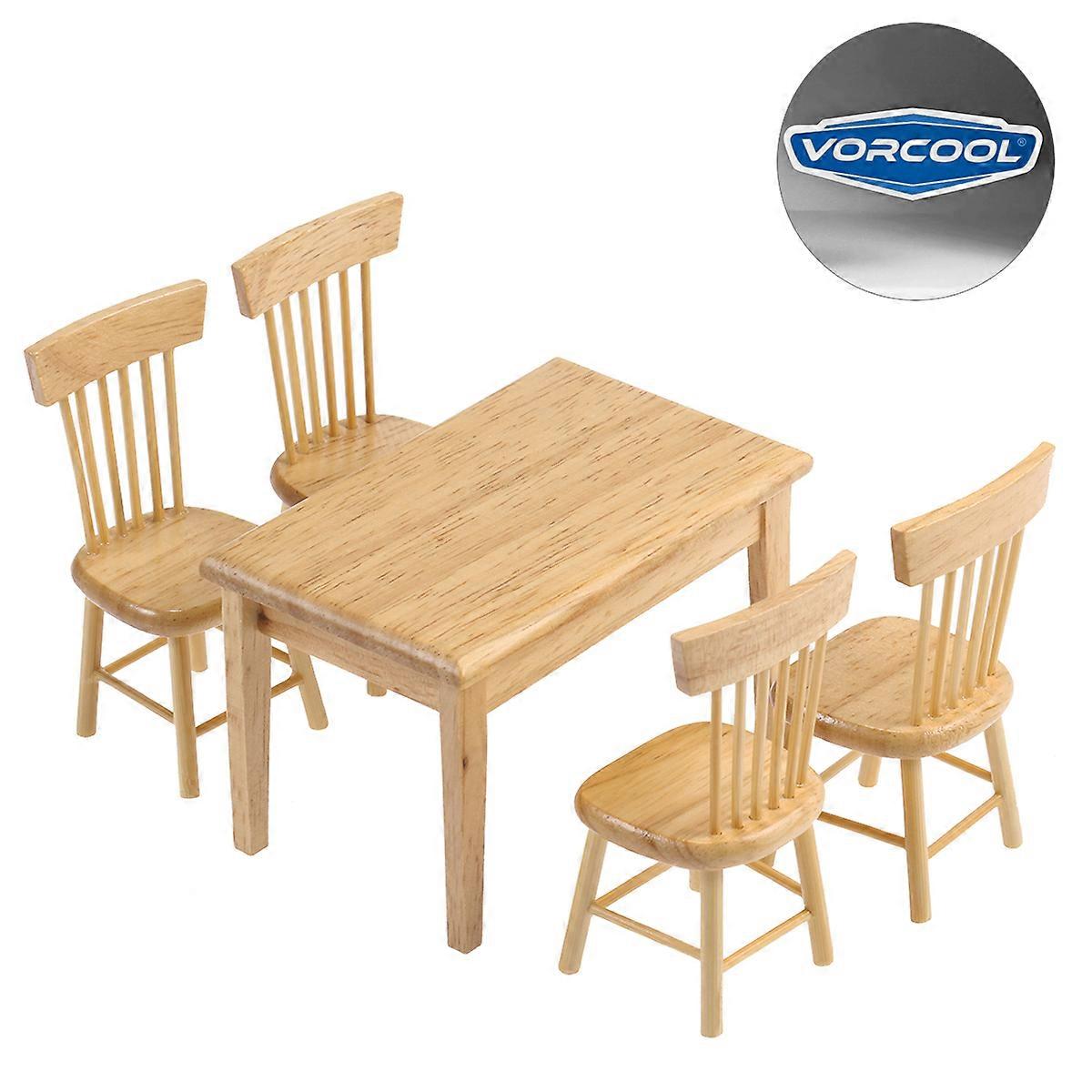VORCOOL 5pcs 1/12 Mini House Miniature Dining Table Chair Wooden Furniture Set (Wood Color)