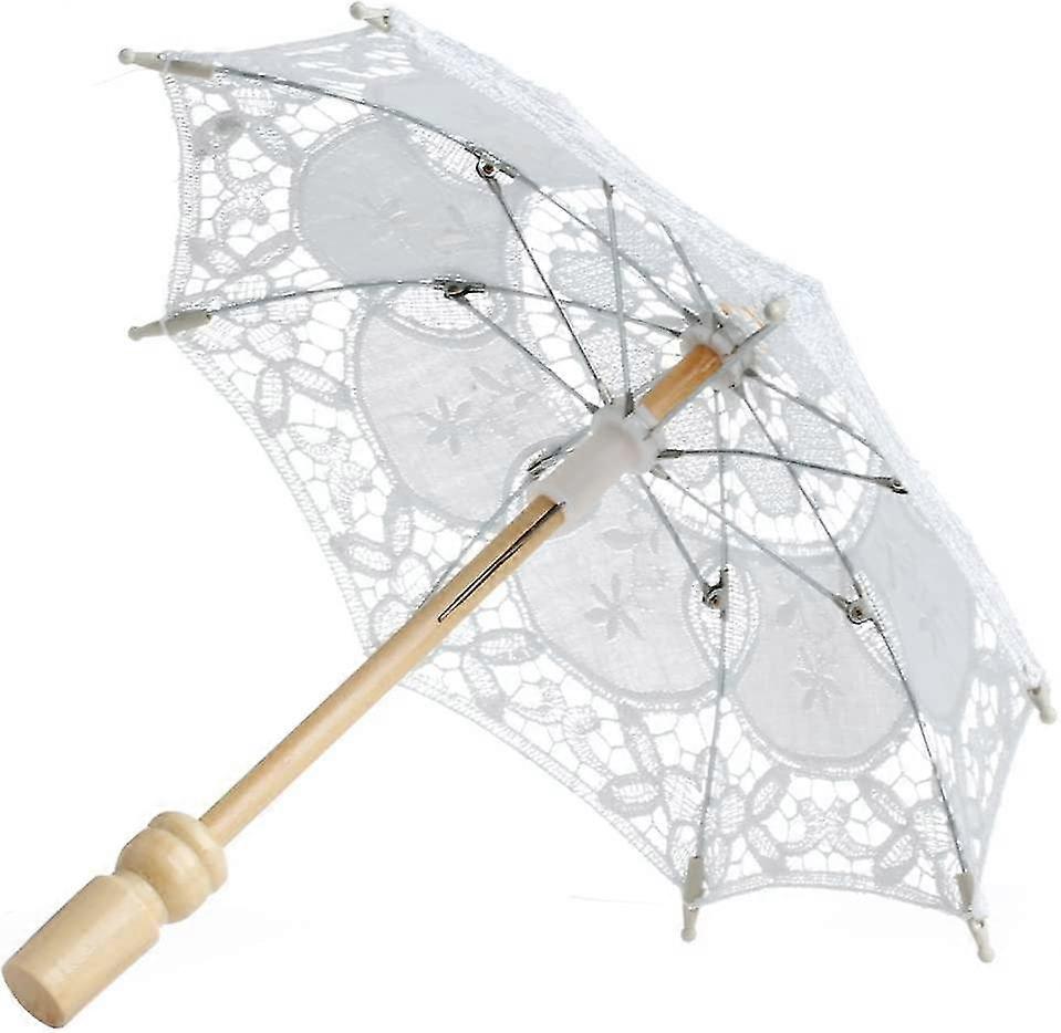 Wabjtam Lace Embroidered Parasol Umbrella For Bridal Wedding Party Decoration,photo Props(white)