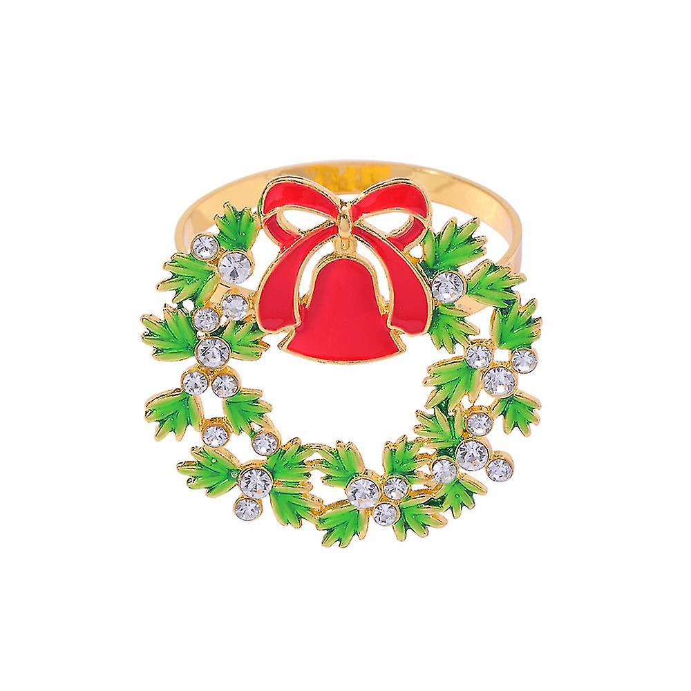 Wabjtam Christmas Napkin Rings Christmas Wreath Napkin Buckle Ring Green Diamond Alloy Napkin Ring