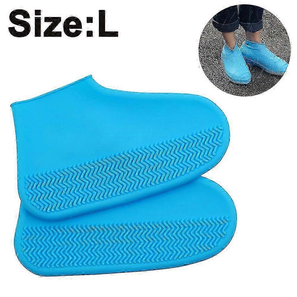 Waterproof Silicone Rain Shoe Cover, Rubber Protector, Blue L