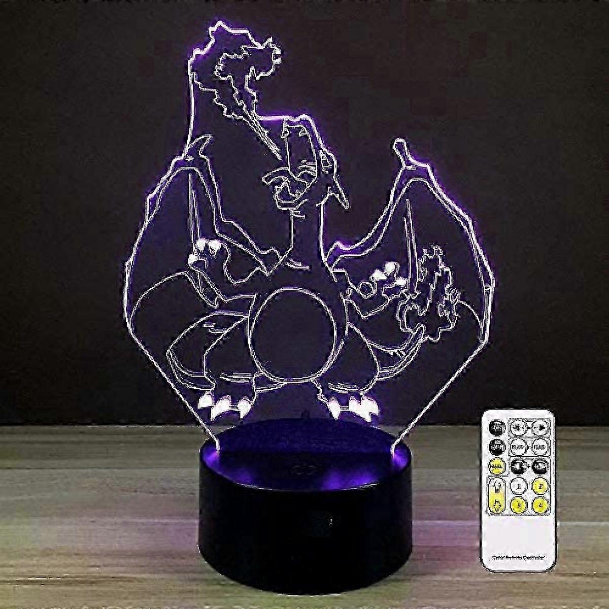Wekity 3D Optical Illusion Charizard Night Light Toy Lamp,Remote Control,Dimmable,Battery or USB Powered,7 Colors Change