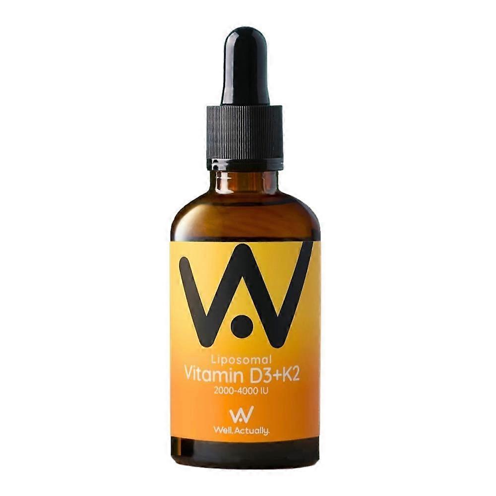 Each 60ml bottle delivers 2000 or 4000 IU of Vitamin D3 plus 80 or 160 mcg of Vitamin K2 (MK7) per 1/2ml or 1ml dose, providing up to 120 servings depending on your desired intake. Administer directly via the pipette or mix effortlessly into cold drinks, smoothies, or cereals for a delicious and convenient daily boost. Delicious Summer Citrus Flavour Enjoy a refreshing orange and mango flavour that makes supplementation a pleasurable experience. Whether taken straight or blended with your favourite beverages, this supplement adds a vibrant taste to your routine. Liposomal Ultra Delivery & Protection Our innovative liposomal delivery system encapsulates Vitamin D3 and K2 within thousands of micro-phospholipid spheres, protecting nutrients from digestive breakdown and ensuring rapid cellular absorption for maximum effectiveness. Quality You Can Trust This formulation contains no artificial preservatives, colours, flavours, or sweeteners. It is vegan and vegetarian friendly, non-GMO, soy, gluten, and alcohol free, and manufactured in the UK adhering to stringent HACCP and GMP standards. Additionally, the eco-conscious packaging reflects our commitment to environmental responsibility. Health Benefits & Use Cases Supports immune system resilience and function Promotes healthy bone density and dental health Contributes to normal muscle function and mood balance Ideal for those seeking plant-based, high-quality vitamin supplementation Perfect for flexible dosing tailored to individual health requirements Discover the vitality of Vitamin D and K2 today. Elevate your wellbeing with Well.Actually High-Strength Liposomal Liquid Vitamin D3 + K2 a natural, effective way to support a healthier, happier you.