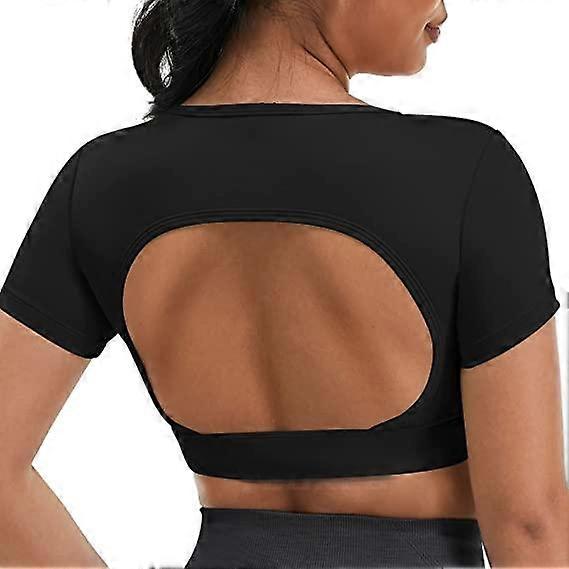 Women Open Back Tee Crop Tops with Removable Pad
