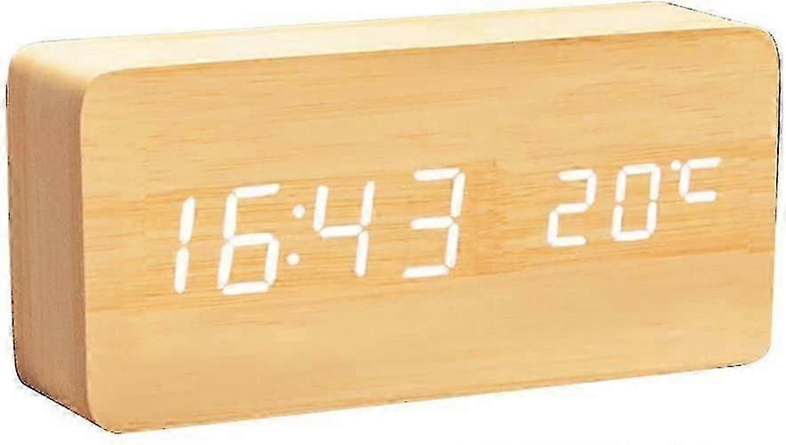 Wooden Digital Clock - Multifunction Led Alarm Clock With Time/date/temperature Display And Voice Control For Home Travel - Ac11yellow_whiteGOOD