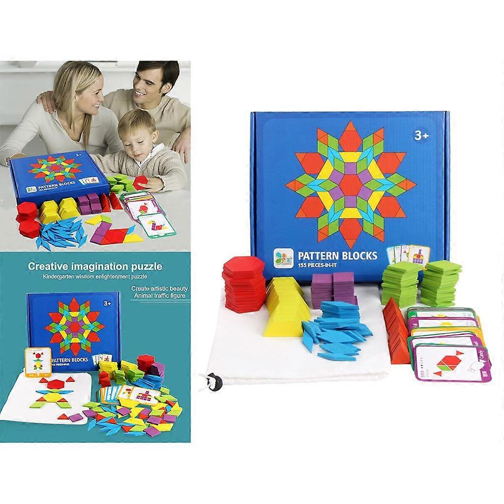 Wooden Pattern Blocks Set Animals Jigsaw Puzzles Brain Teasers Tangrams Stacking Sorting Game Early Educational Toy Gift for Kid Toddlers Age 3+ Years
