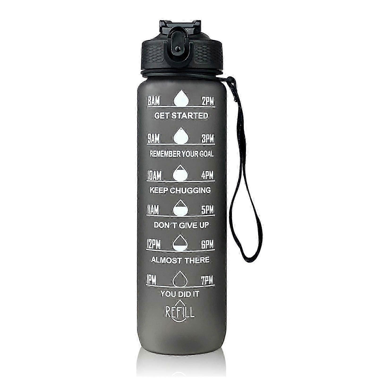 Workout water bottle with straw and time tracker