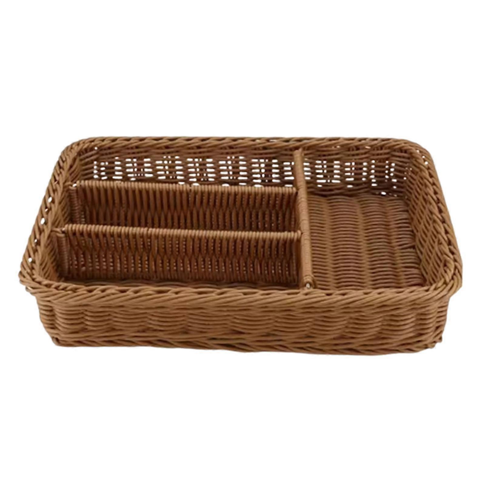 Woven Cutlery Basket Divided Storage Basket Versatile Flatware Organizer Serving