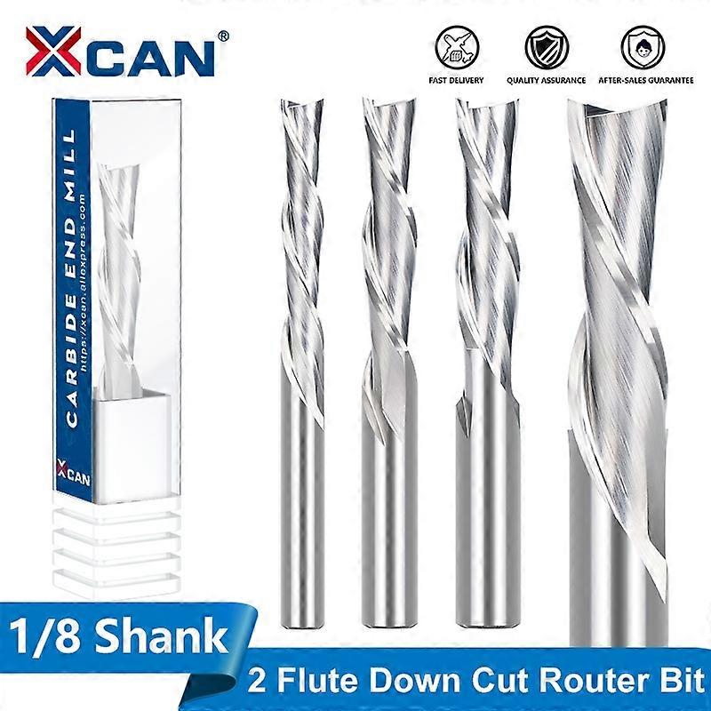 XCAN Down Cut Router Bit 1/8 Shank Carbide Milling Cutter 2 Flute CNC Machine End Mill for Woodworki