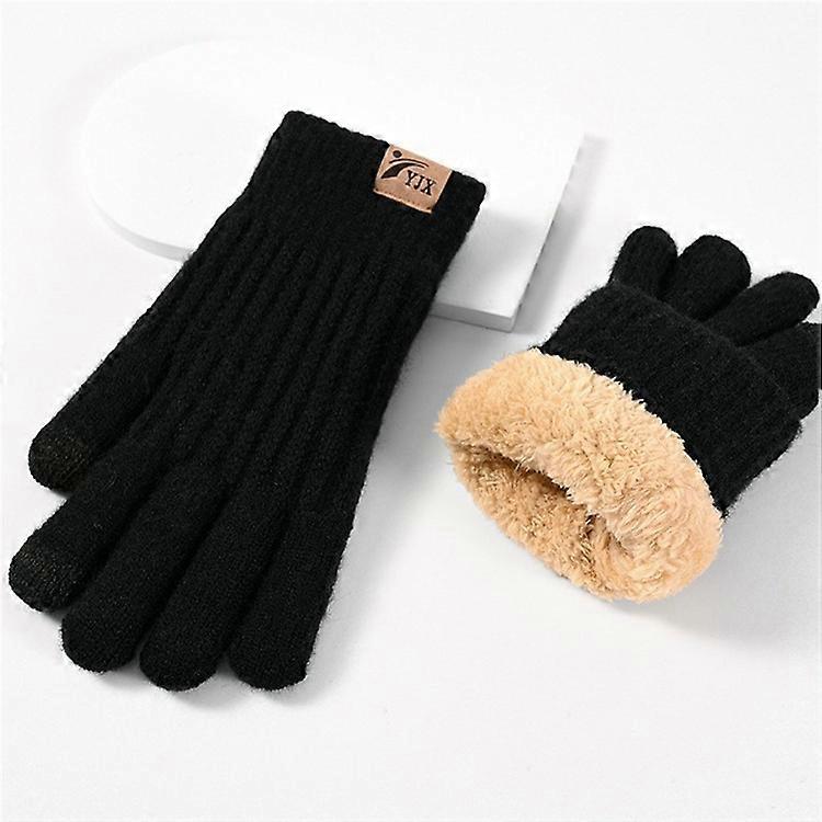 YJX A9904 Men Winter Touch Screen Gloves Polar Fleece Lined Full Finger Knit Mittens