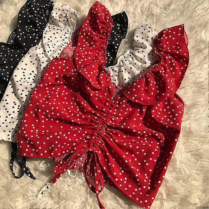 YOUGANG high quality Super Fairy French Style Retro Vacation Style Sexy Shoulder Wave Dot Drawstring Strapless High Waist Slimming Short Top Women's S