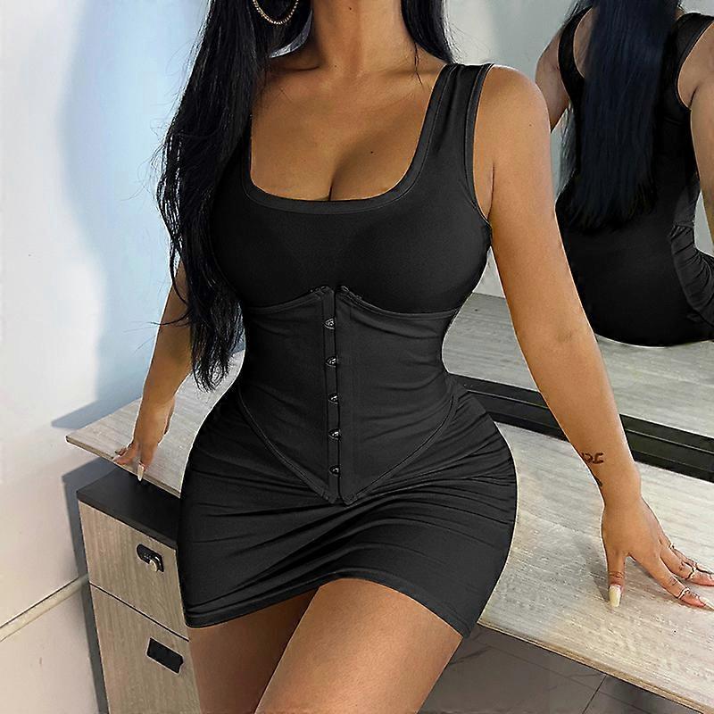 YOUGANG high quality Yj22207 Knitted Square Collar Vest Buckle Belted Waist Dress European And American Sexy Slim-Fit Solid Color Elegant Hip Dress