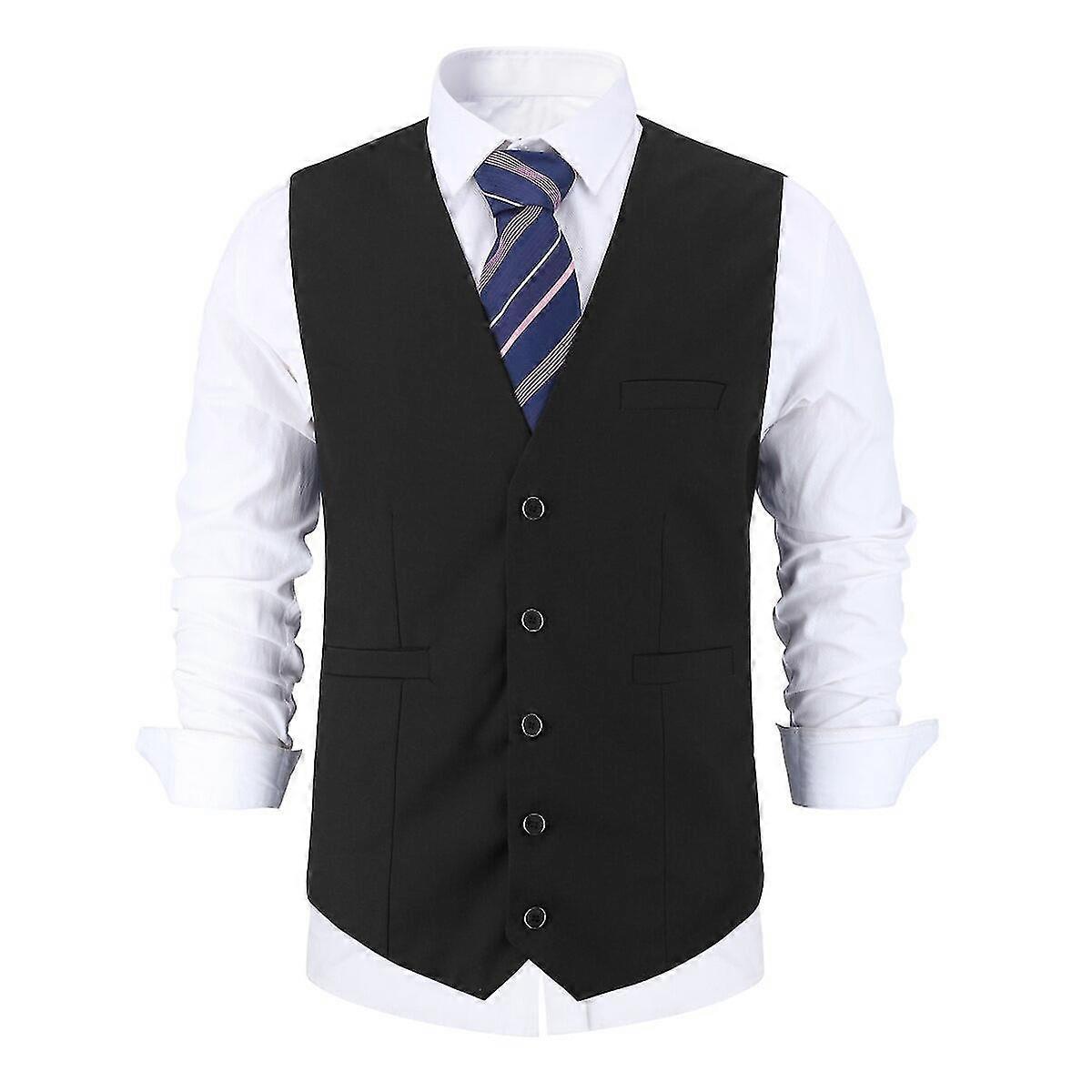 YOUTHUP Mens Business Suit Vest Slim Fit Solid Color Formal Waiscoat