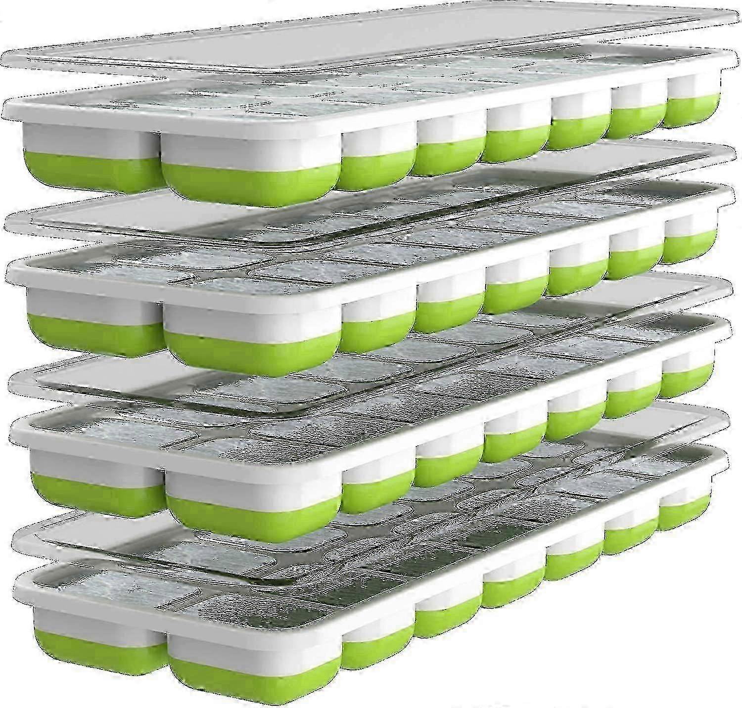 VERY EASY TO REMOVE ICE CUBES: no more struggling to serve you a very cold drink: our ice cubes come out directly Quick and easy release, with our flexible trays, releasing ice cubes becomes child's play simply leave the tray in the open air for 2 minutes after taking it out of the freezer so that the ice cube relaxes SAVE SPACE IN YOUR FREEZER: with our stackable lids: each ice cube tray is COMES WITH ONE LID AND CAN BE PLACED ONTO ANOTHER (check main product image for more info): Maximize space in your freezer and keep your ice cubes pure and odor free EASY TO CLEAN FILL WITH LESS MESS: just pour water, cover using the stackable lid provided and place in the freezer your ice cubes being covered there is less clutter in your kitchen SAVE SAVINGS: AN ICE CUBE TRAY THAT WILL PROVE PROFITABLE More space in your freezer and no more money wasted on buying bags of ice cubes Note: Due to the light and screen setting difference, the item's color may be slightly different from the pictures. Please allow slight dimension difference due to different manual measurement.